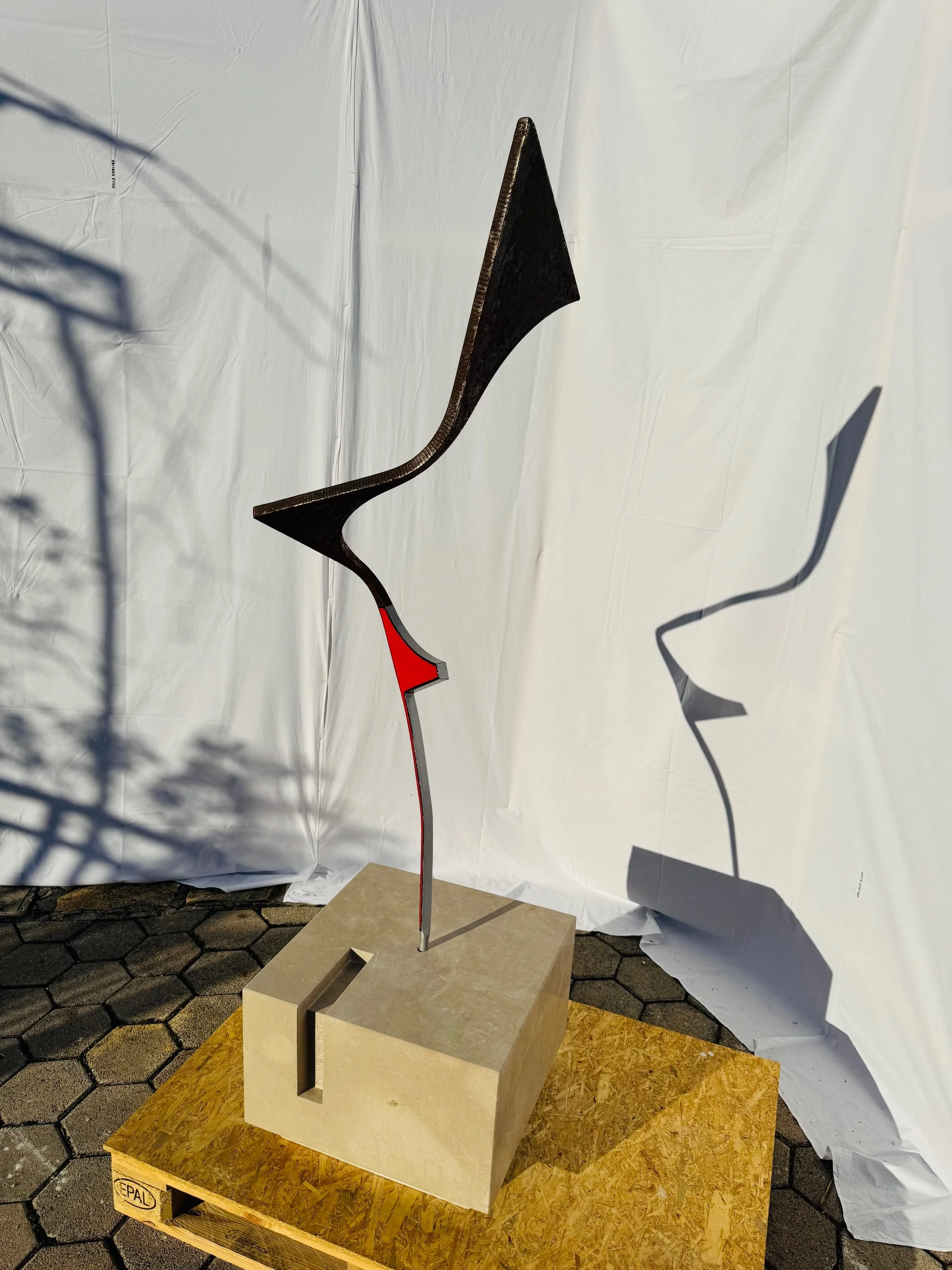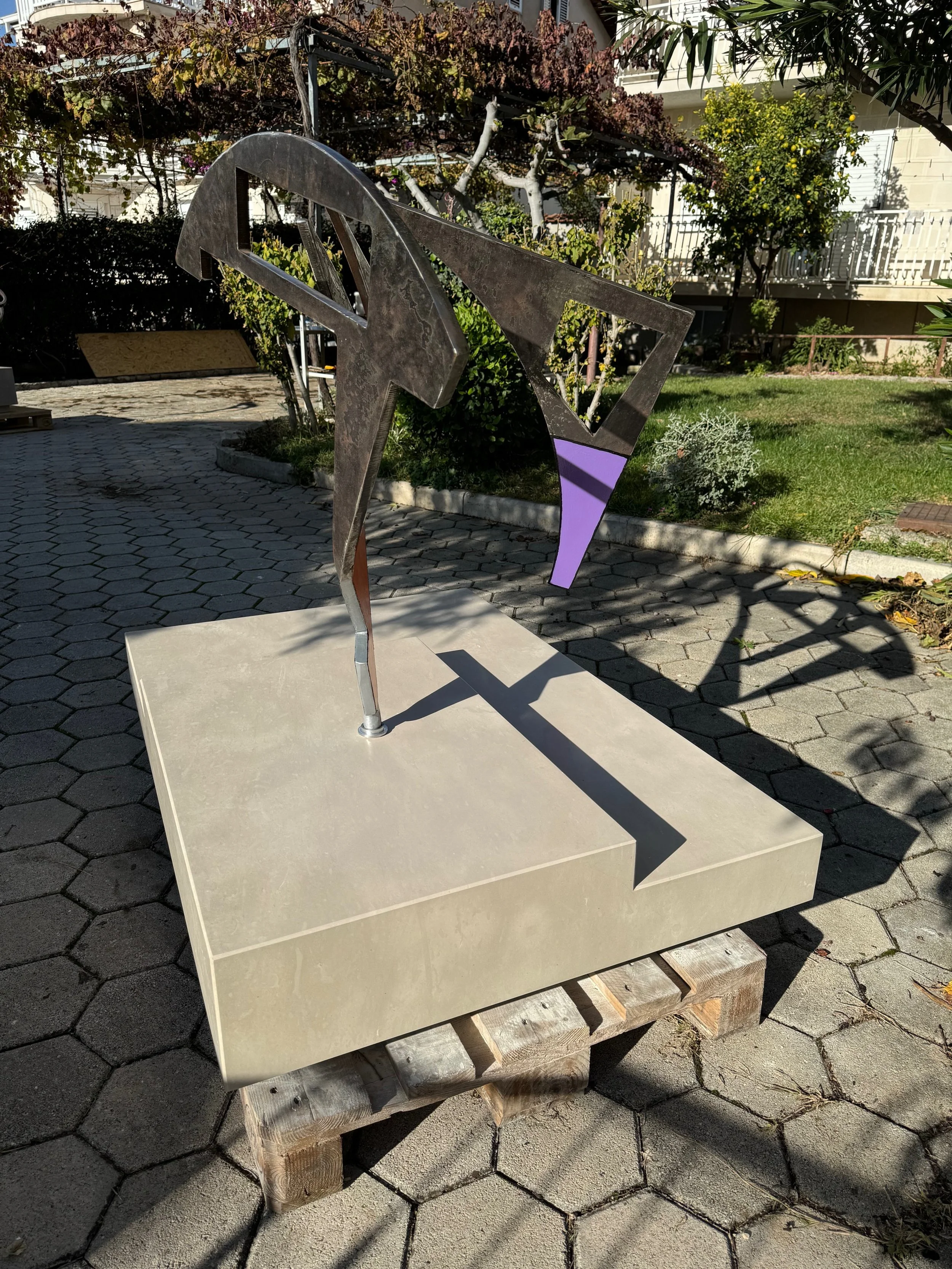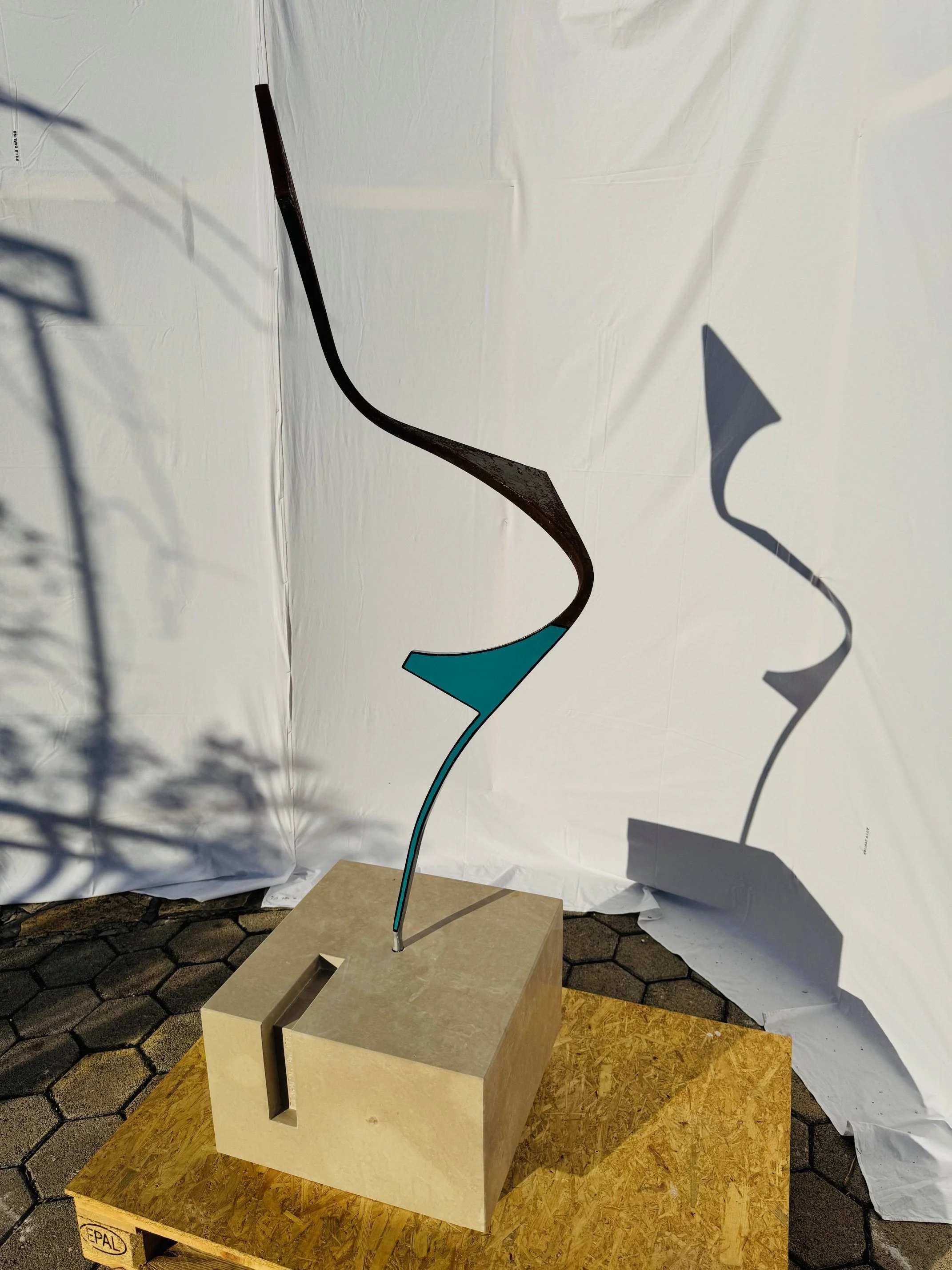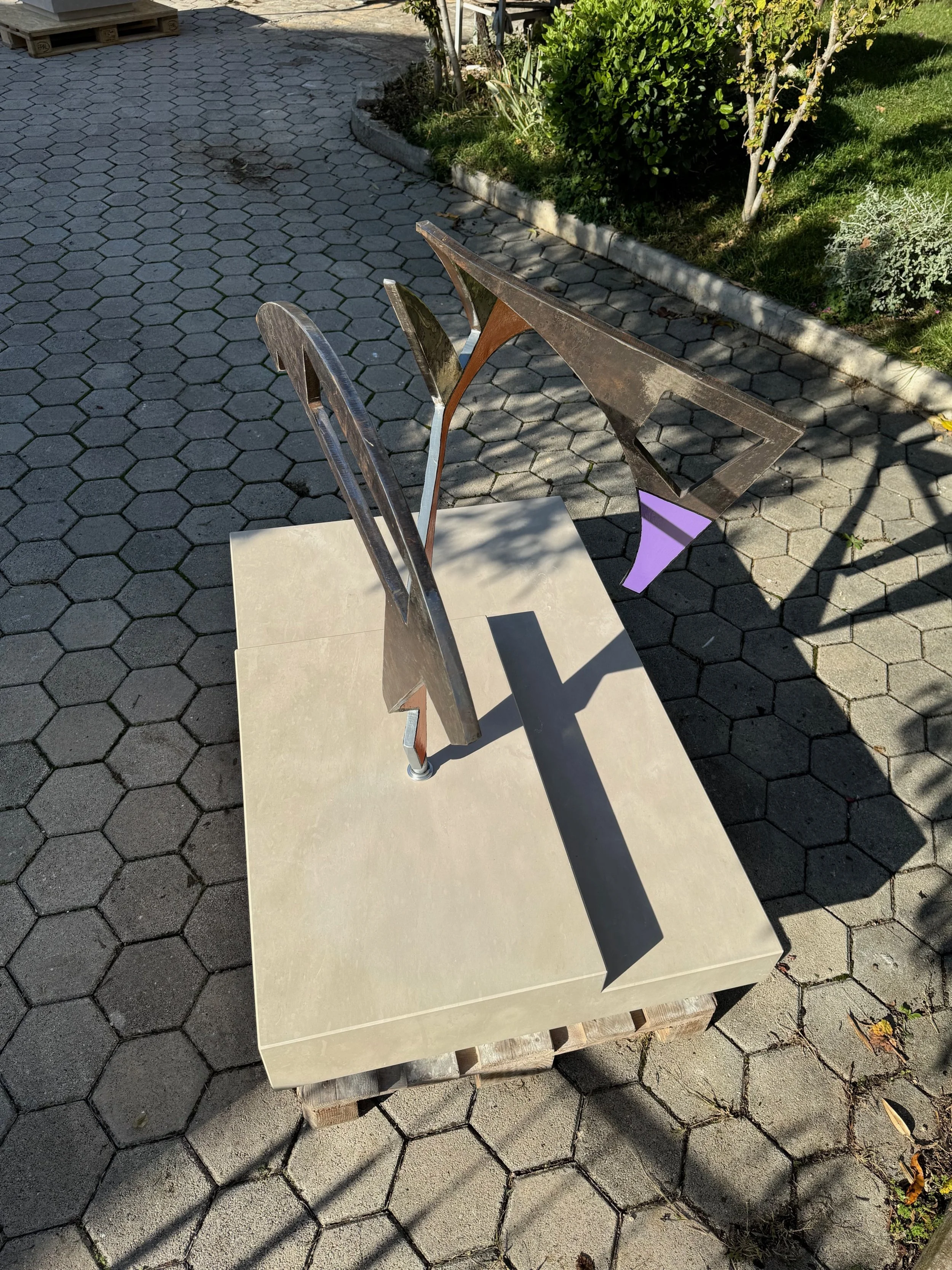 No. 792, Open trio, 2025, material: steel and concrete, 180 x 105 x 5 cm, 165 kg + 240 kg concrete pedestal