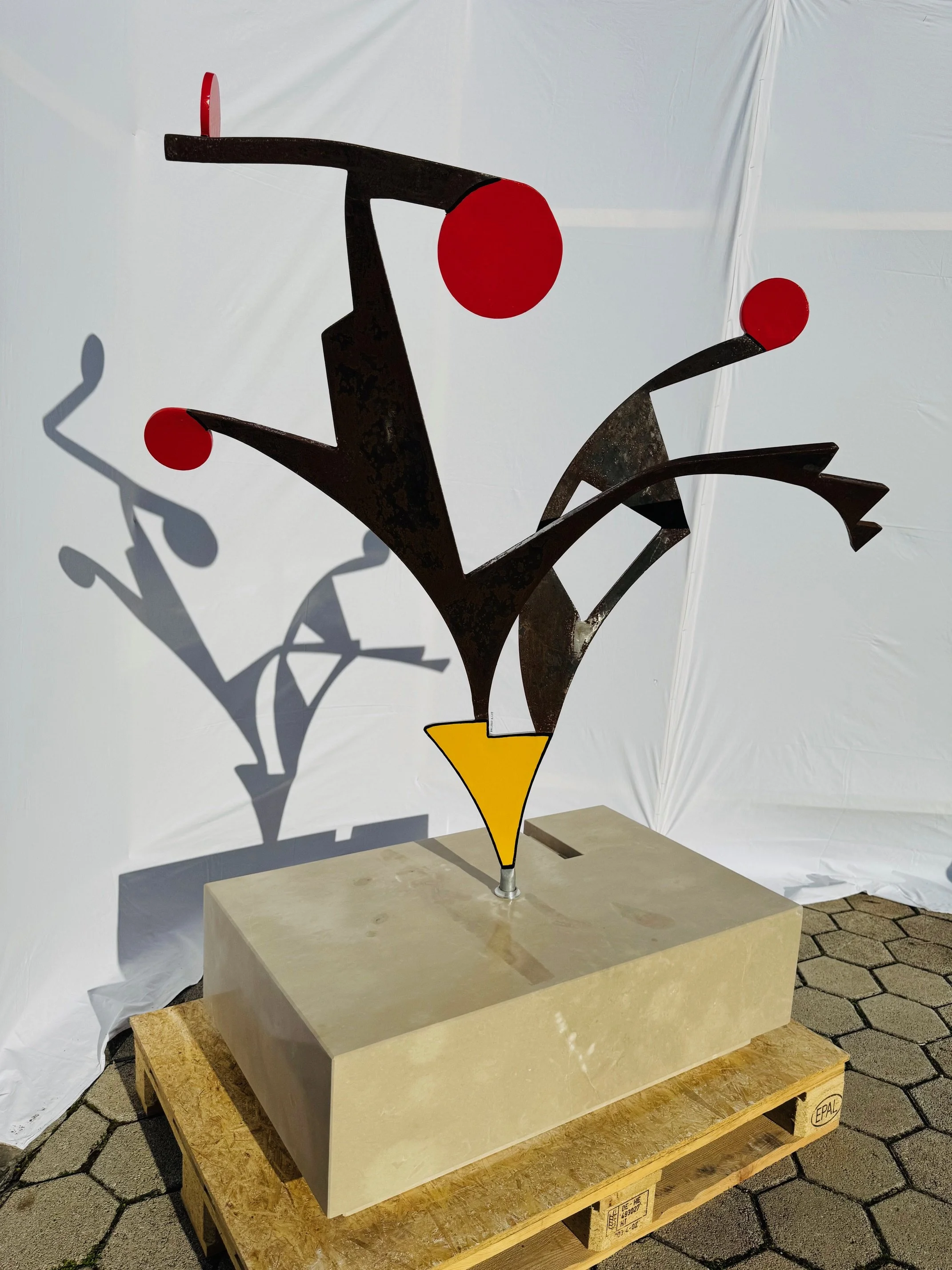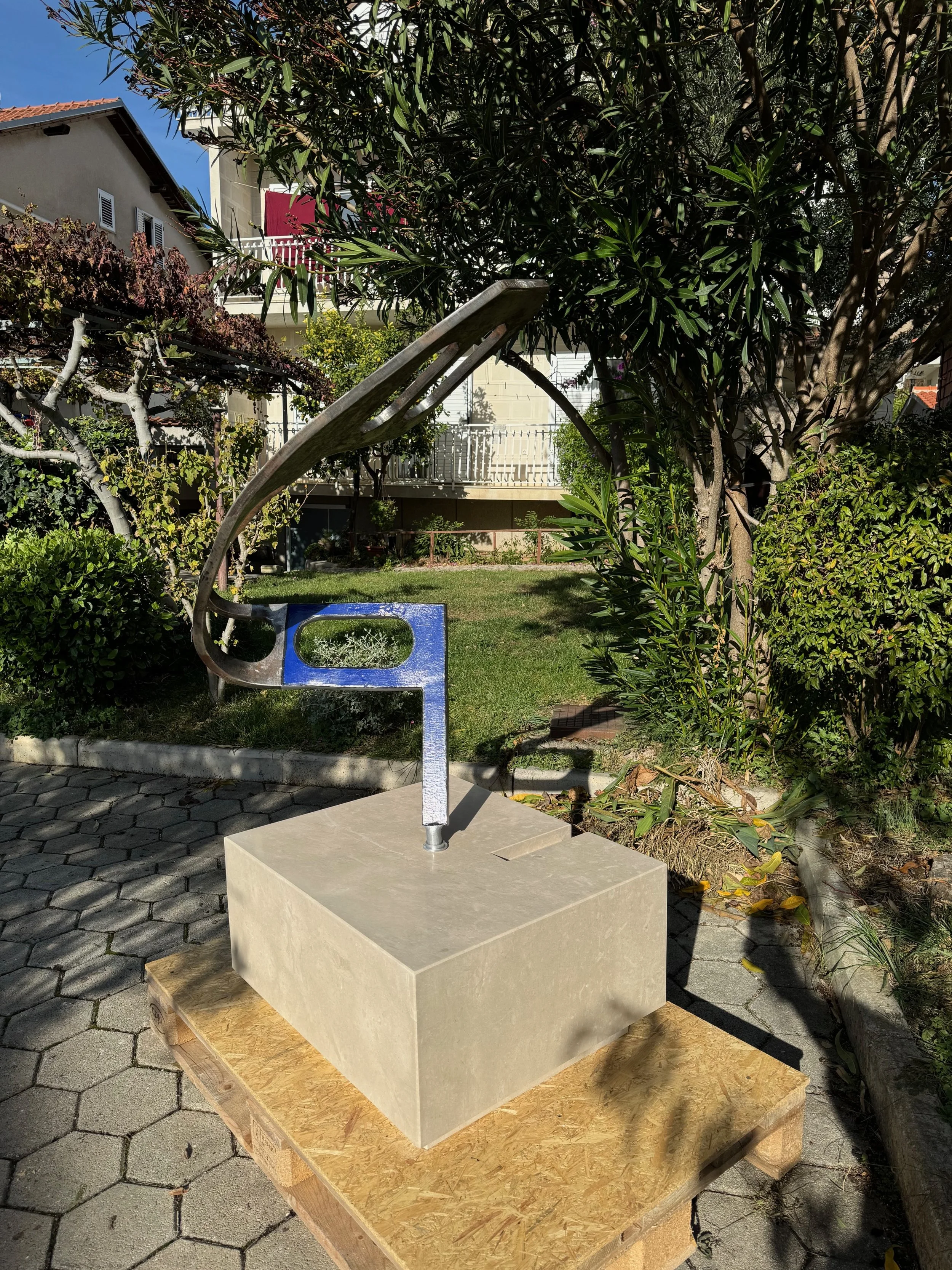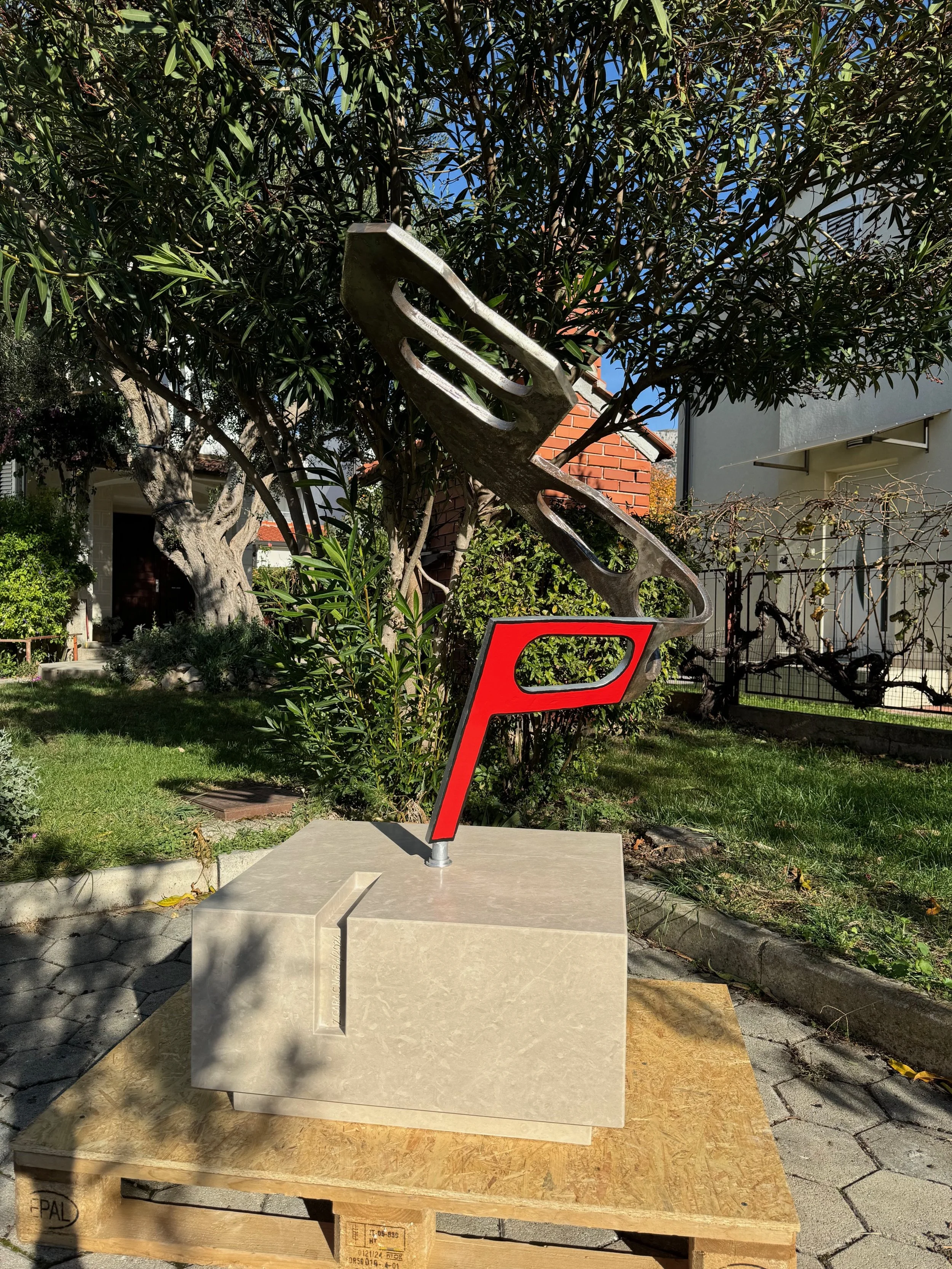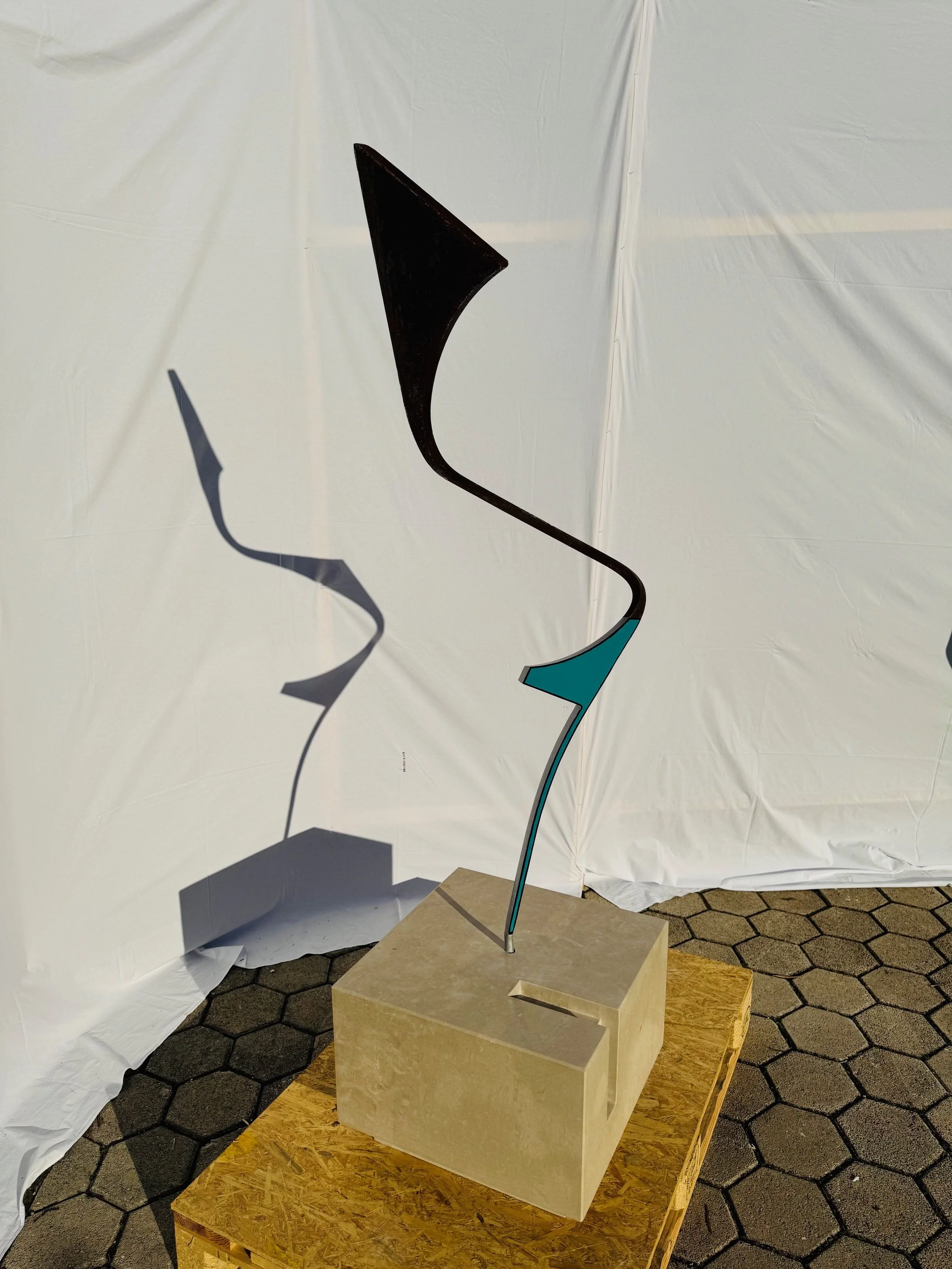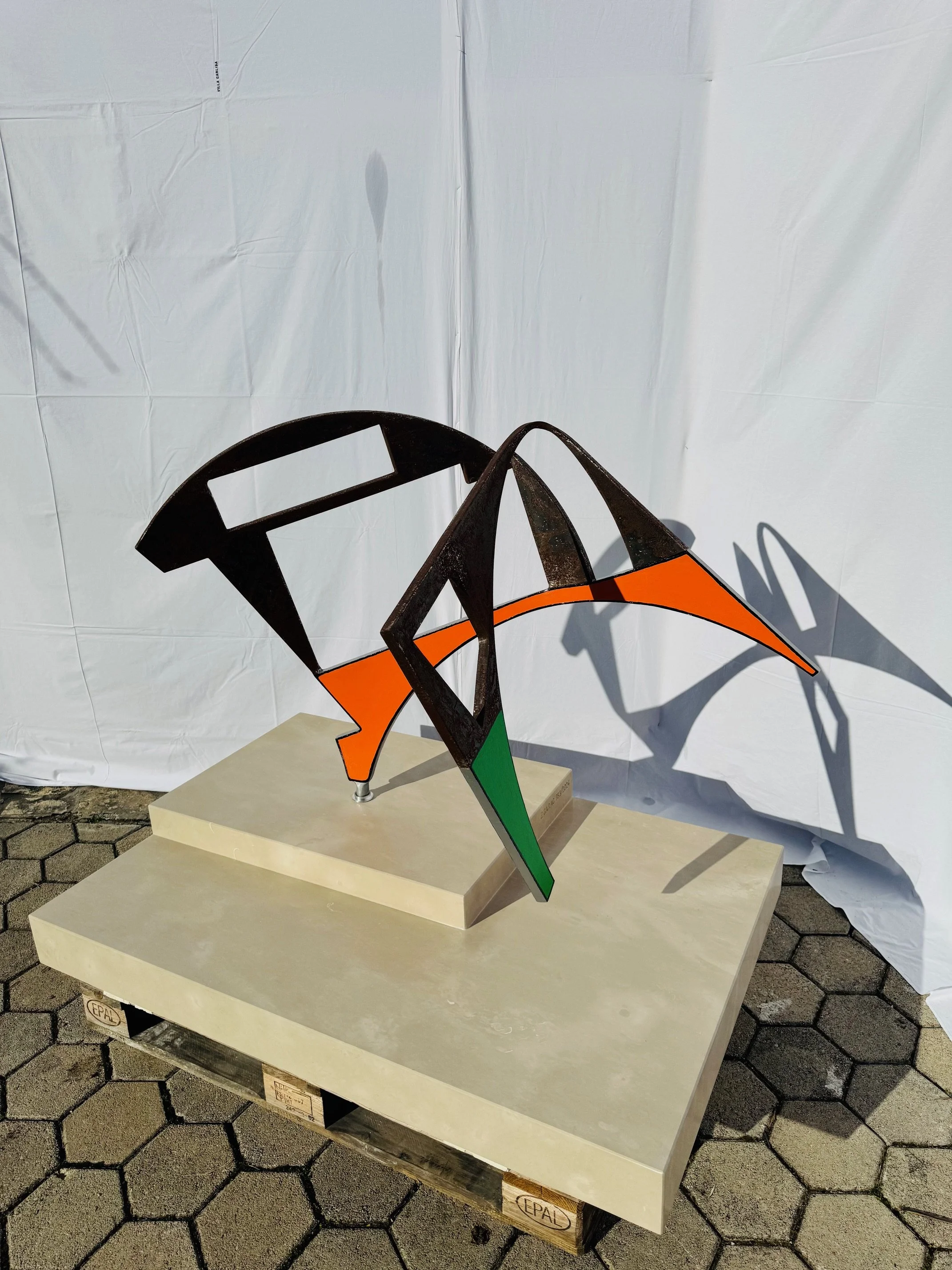 No. 792, Open trio, 2025, material: steel and concrete, 180 x 105 x 5 cm, 165 kg + 240 kg concrete pedestal