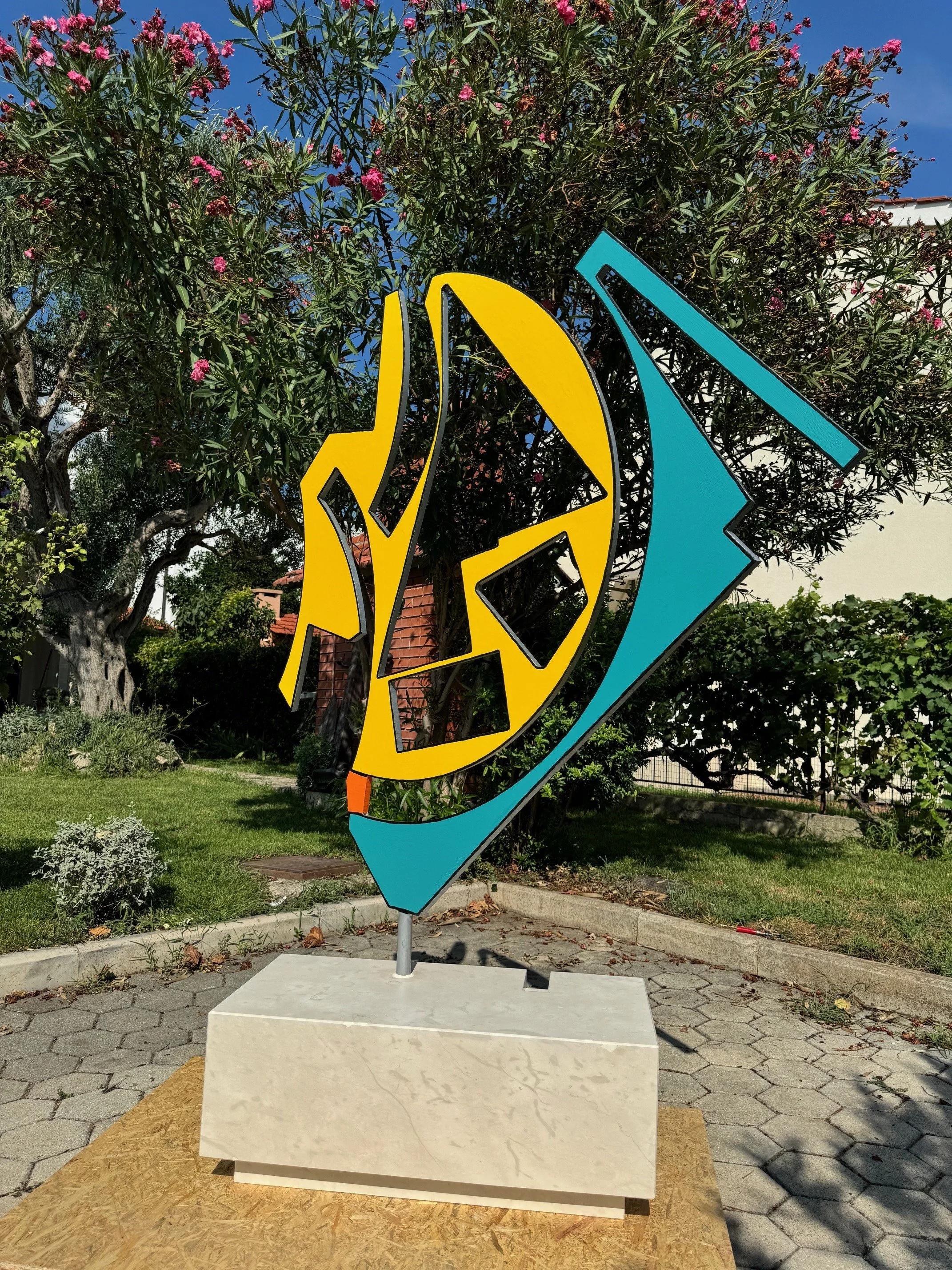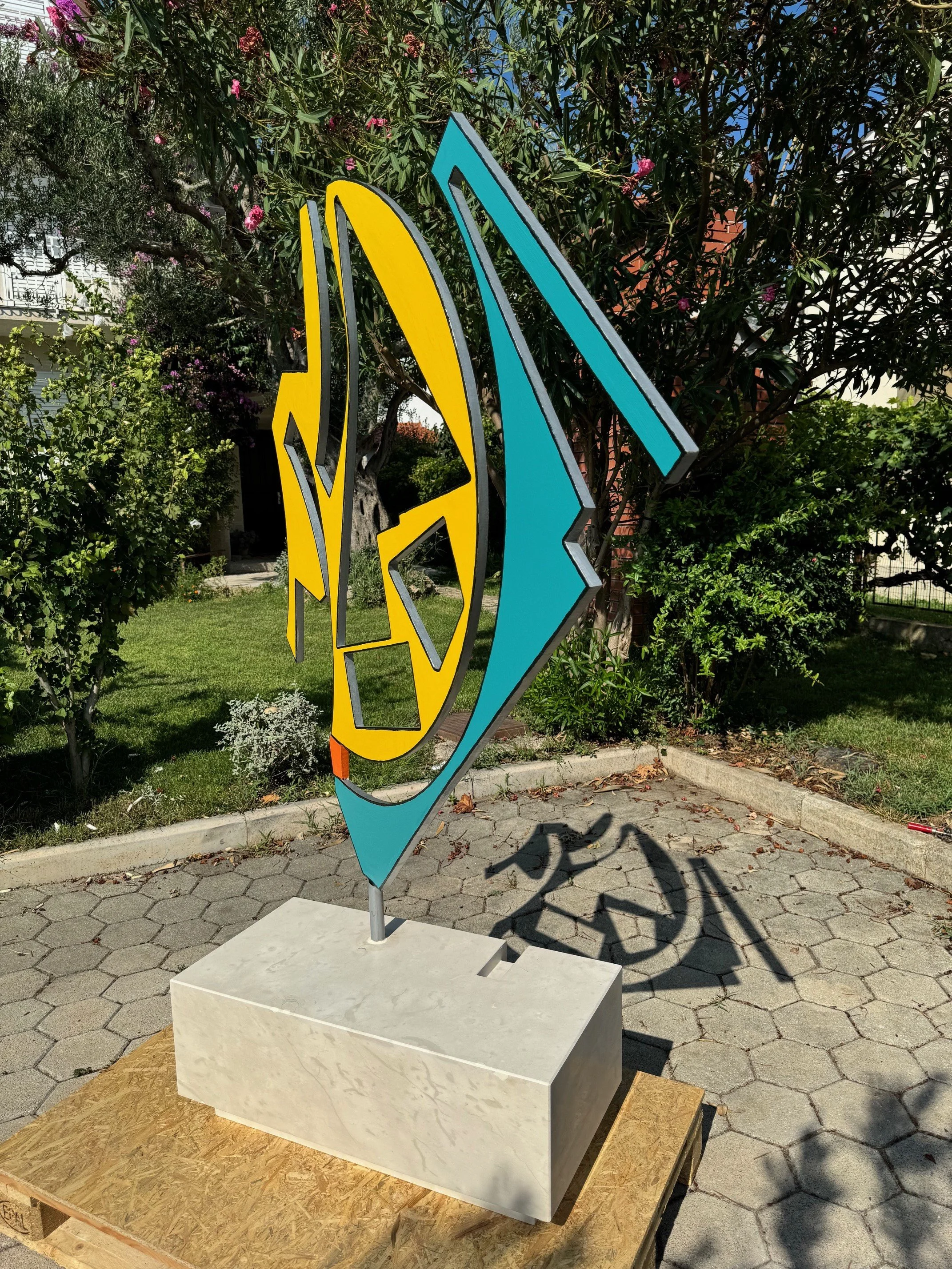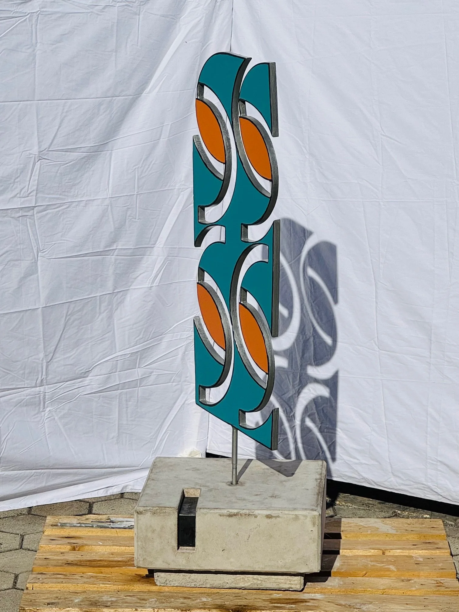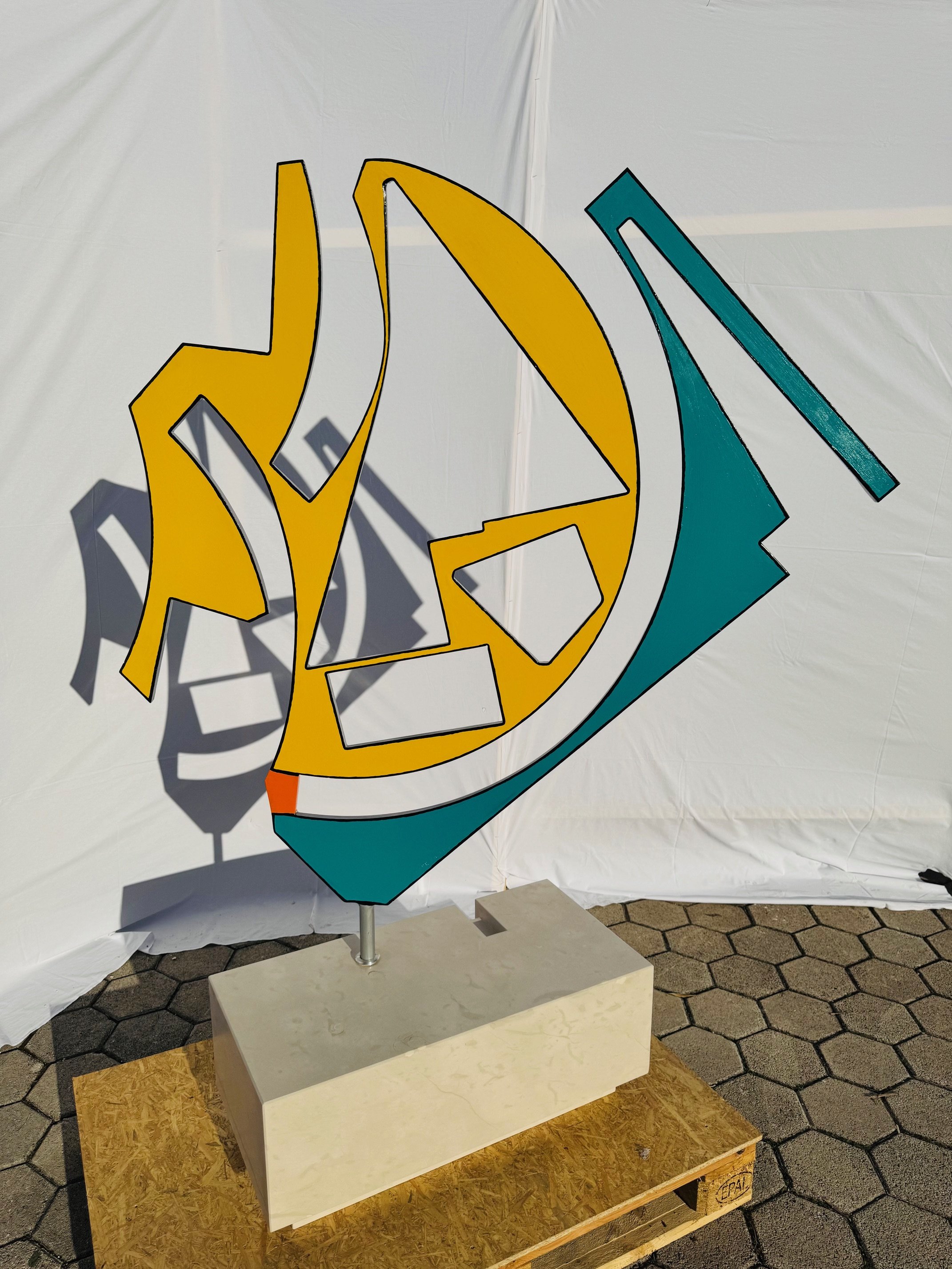 No. 792, Open trio, 2025, material: steel and concrete, 180 x 105 x 5 cm, 165 kg + 240 kg concrete pedestal