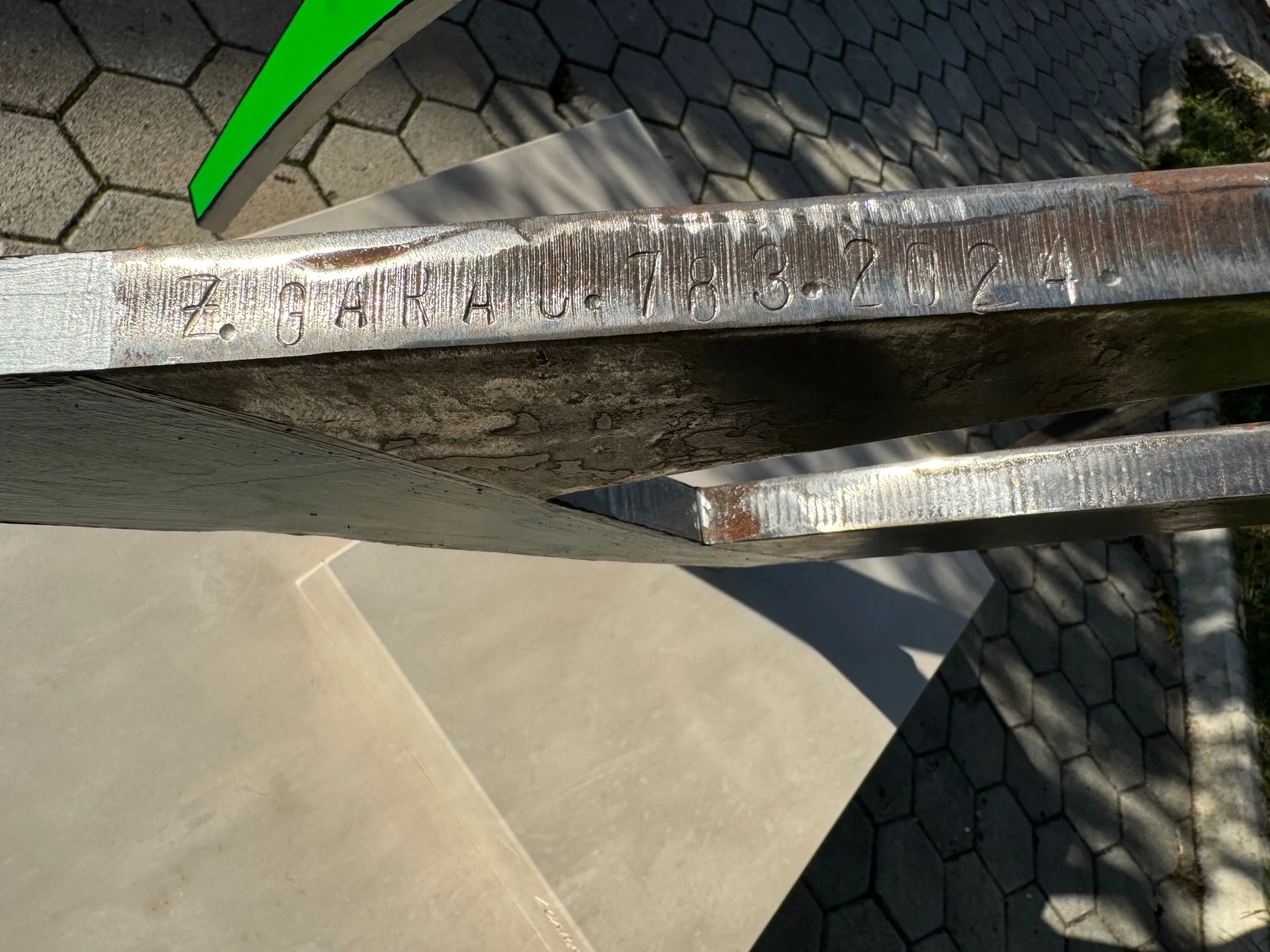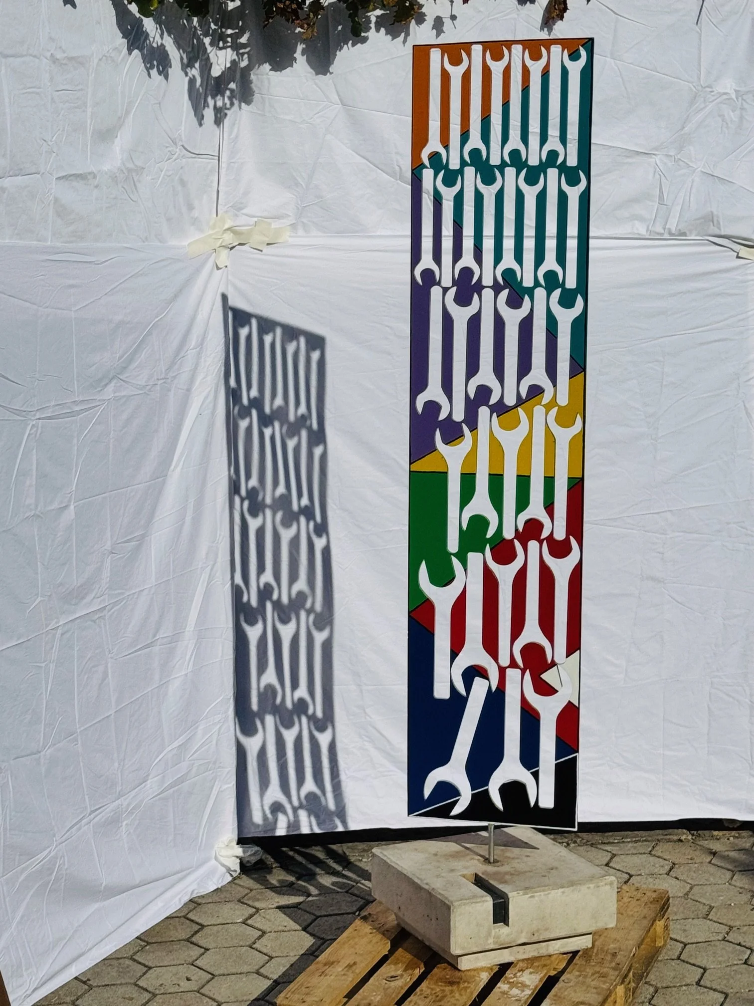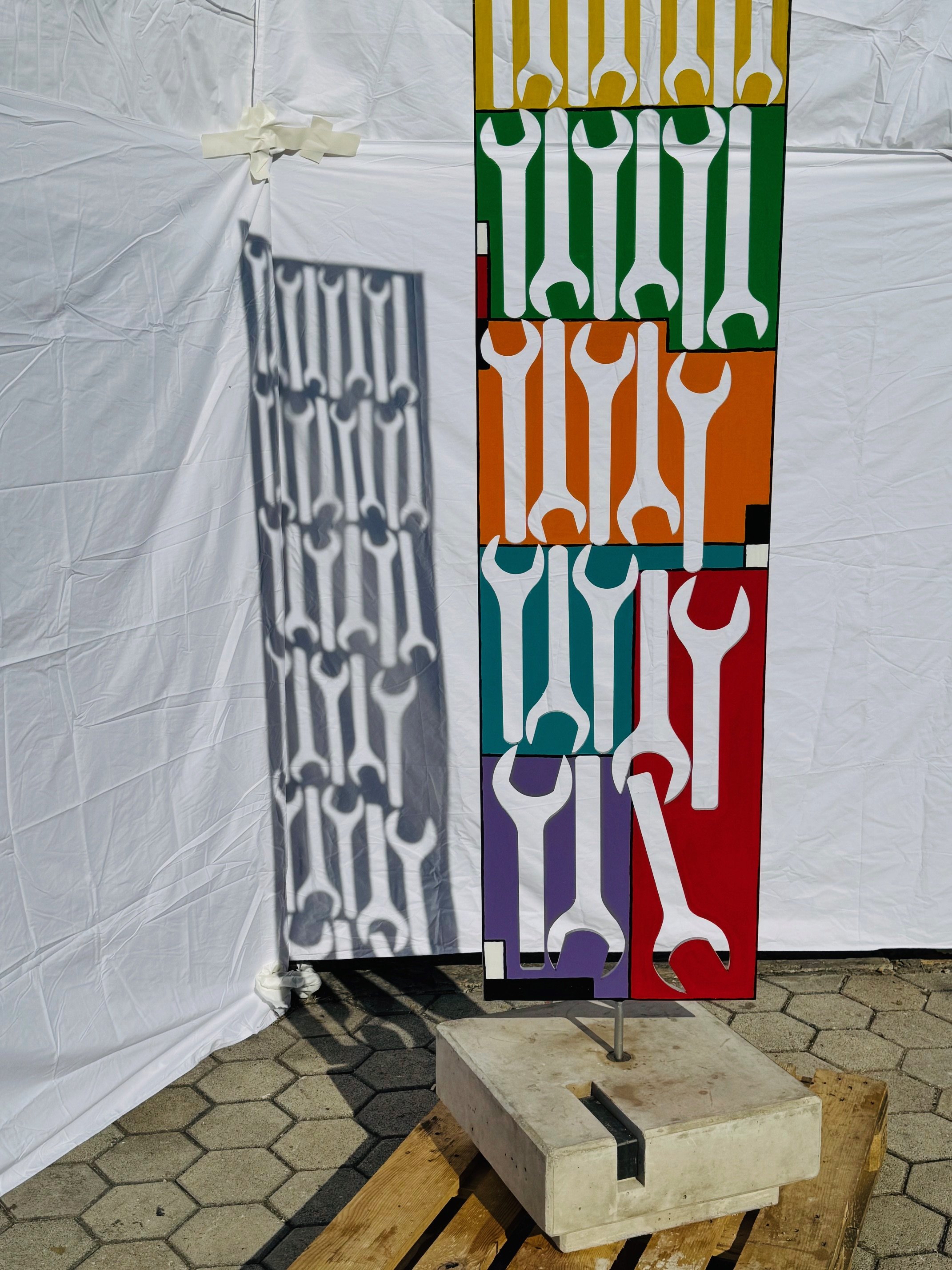 No. 789, Where are the keys? 2025, Material: steel and concrete, 246 x 48 x 1,2 cm, 54 kg + 130 kg concrete pedestal