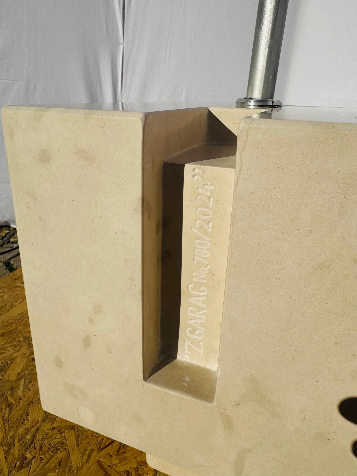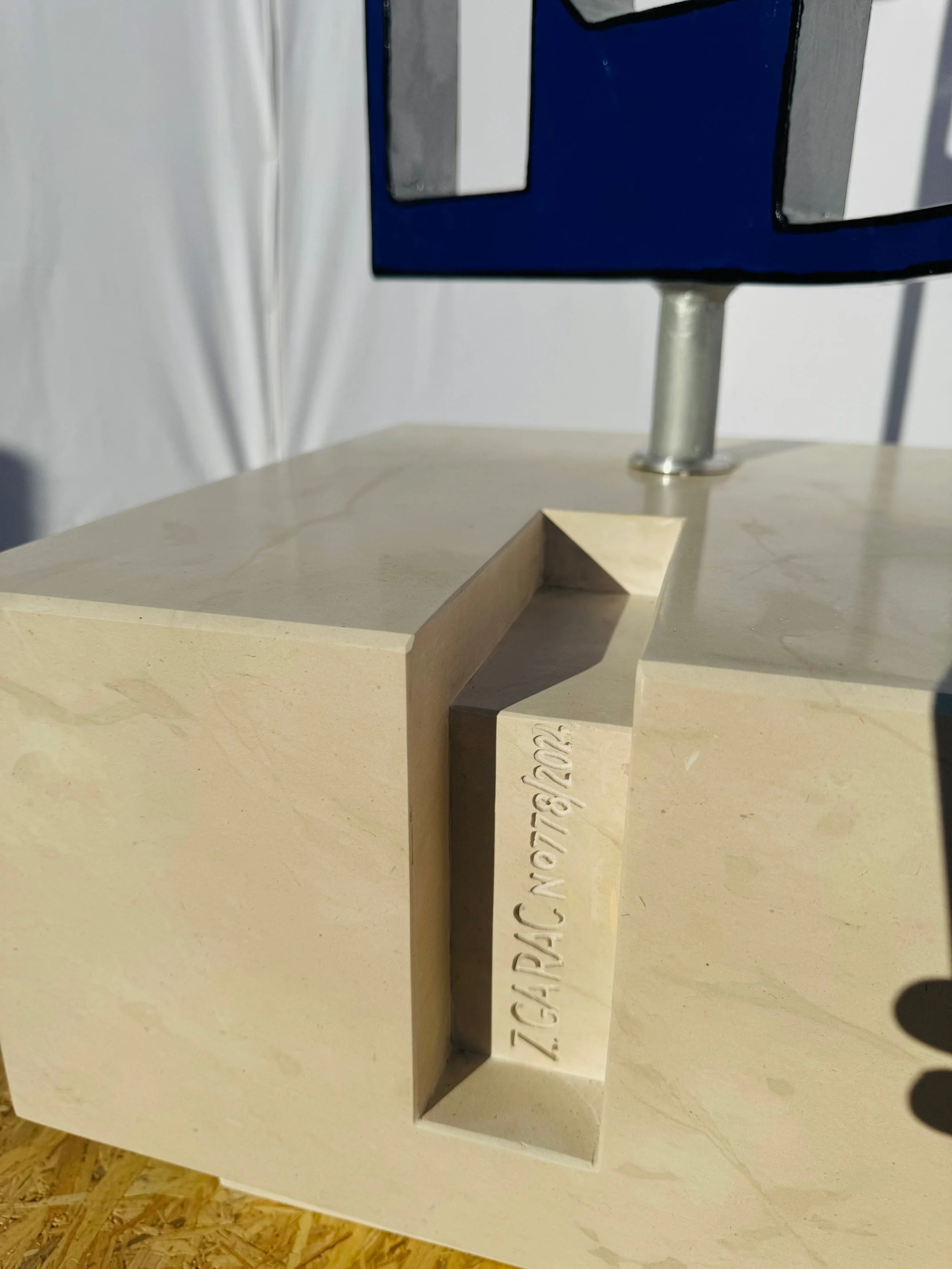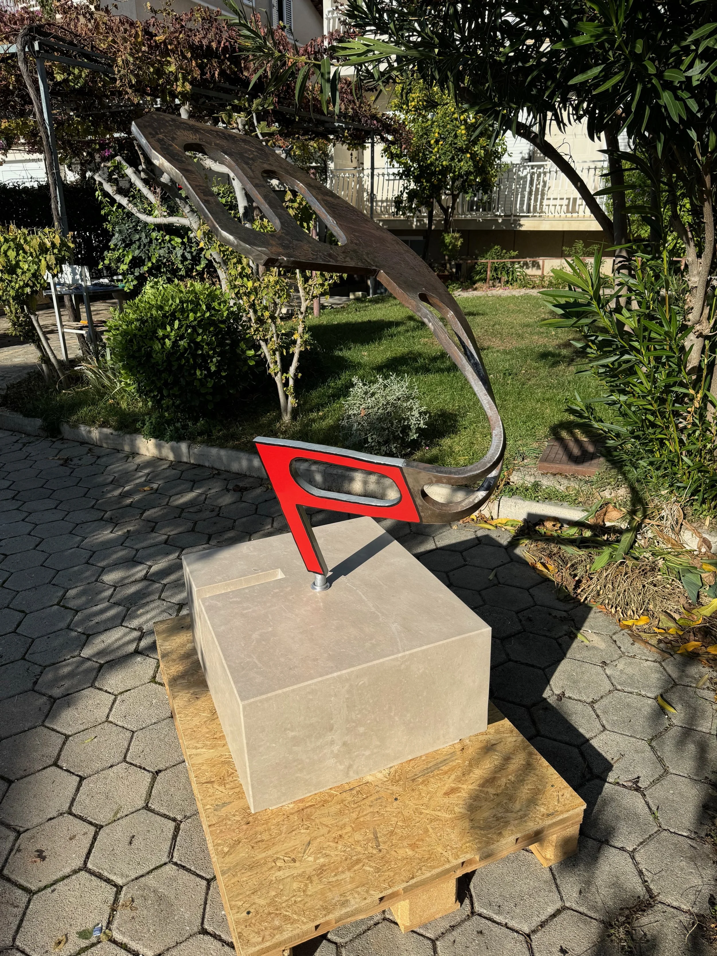 No. 779 Breaking free, 2024. Steel and marble - 170 x 100 x 40 cm, 80 + 240 kg marble