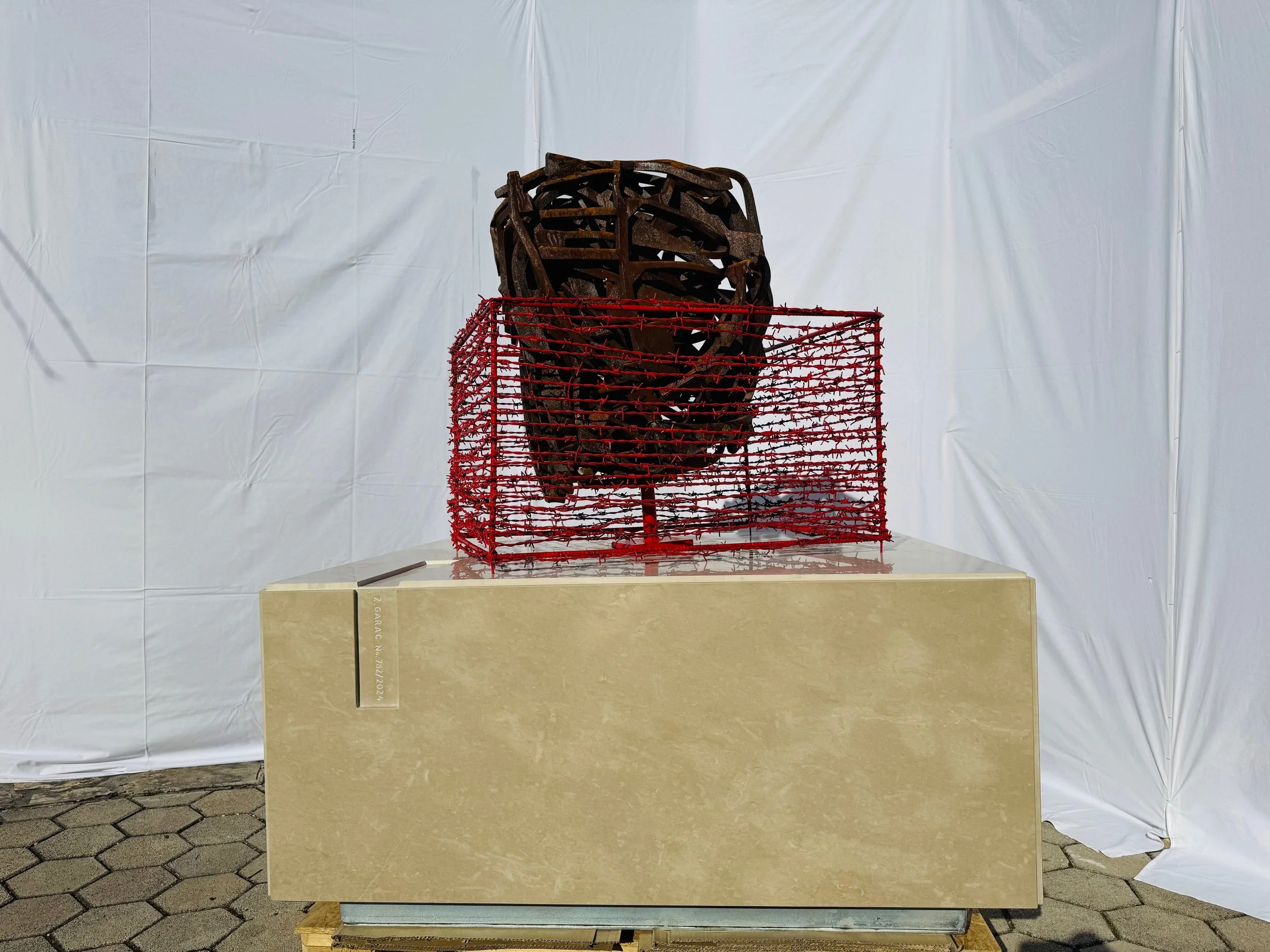 No. 782, Communism, 140 x 120 x 110 cm, 170 kg steel + 540 kg marble pedestal